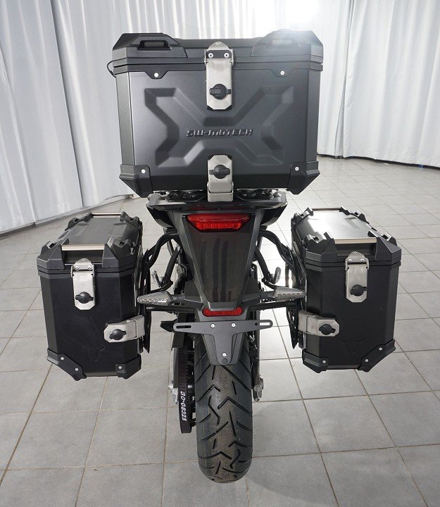 Sturzbügel, Touringscheibe, hochwertige Sitzbank, Seitenkoffer und Topcase mit Innentaschen,